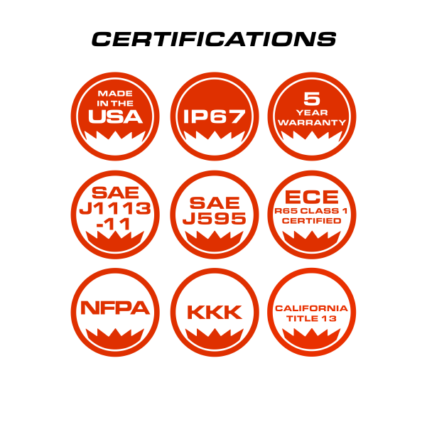 Meet all SAE, CT13, KKK, NFPA, ECE R65 Requirements